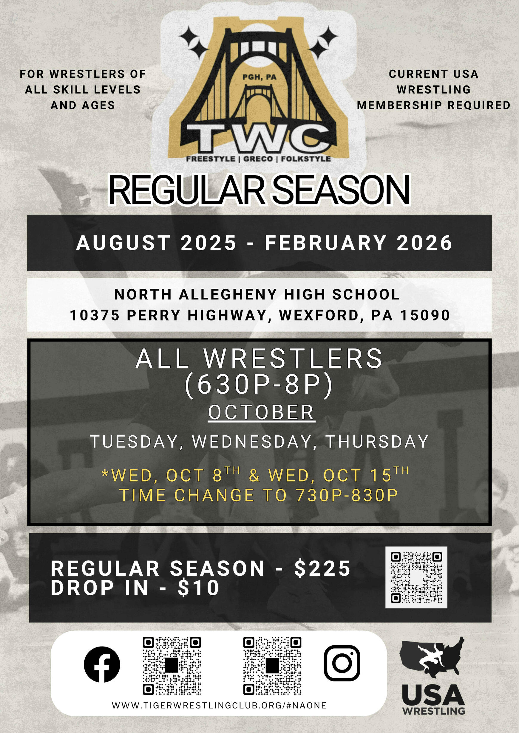 USA Wrestling Memberships for the 2024 - 2025 season are now available to purchase. Please click on the image link above to visit the USA Wrestling Membership page and purchase your membership today. Tiger Wrestling club is a member of USA Wrestling and we require all of our wrestlers to be members. Yearly memberships start at $50.